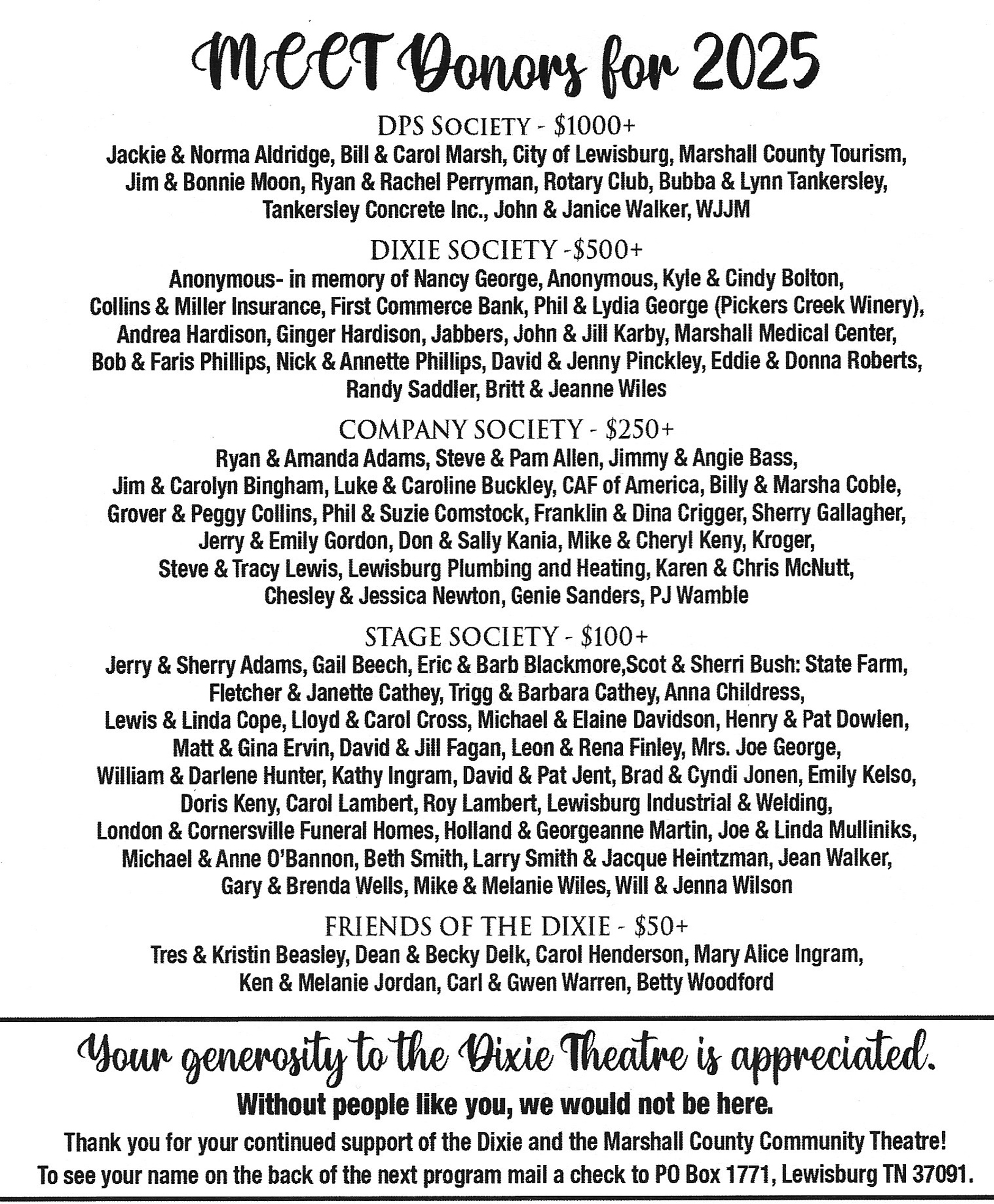 MCCT • P O BOX 1771 • 110 WEST CHURCH ST • LEWISBURG TN 37091 • 931-270-PLAY