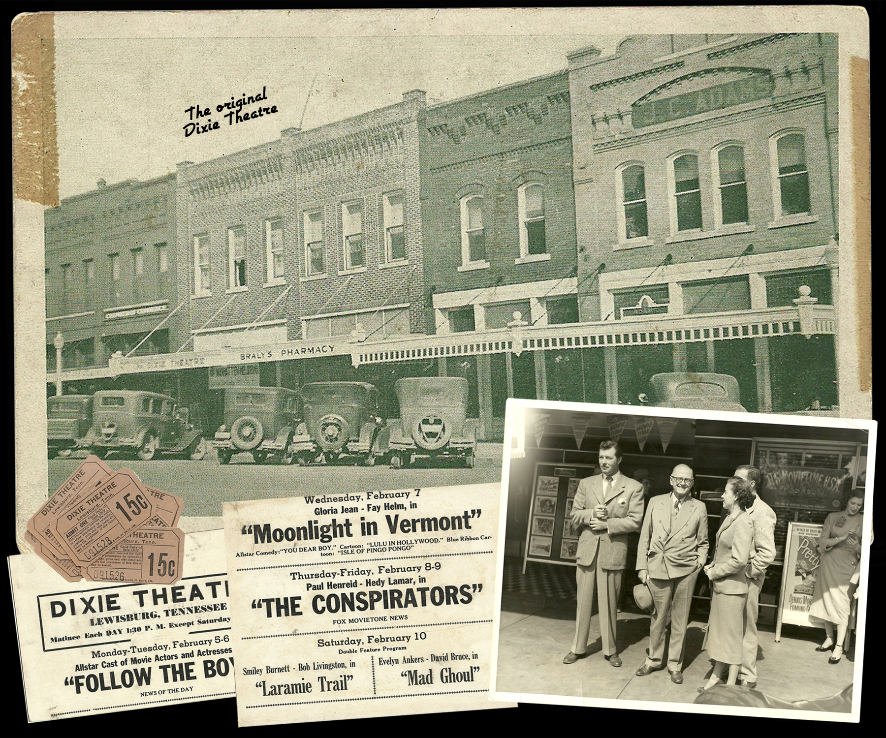 The Dixie Theatre was built in 1913 by M. P. Boyd as a silent movie house with an all-purpose stage. At that time, The Dixie was located on the east side of Lewisburg's public square.